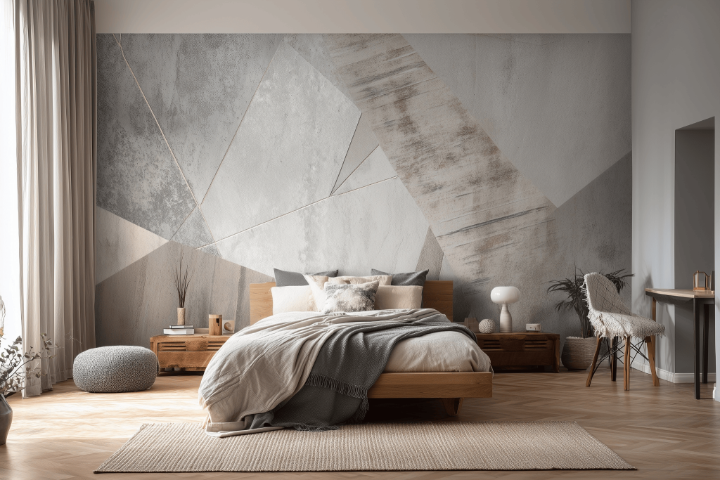 If you love clean lines with a pop of personality, this one’s for you. Abstract shapes and geometric patterns are one of the hottest bedroom design elements and wall painting ideas for 2025. Think colour-blocked triangles, floating circles, or asymmetrical waves. You don’t need to go overboard. Choose two to three colours that complement your furniture or bedding. A soft blush paired with grey and gold can look sophisticated, while bold blue shapes create a lively, modern edge. This trend works exceptionally well in modern bedroom wall painting design themes.