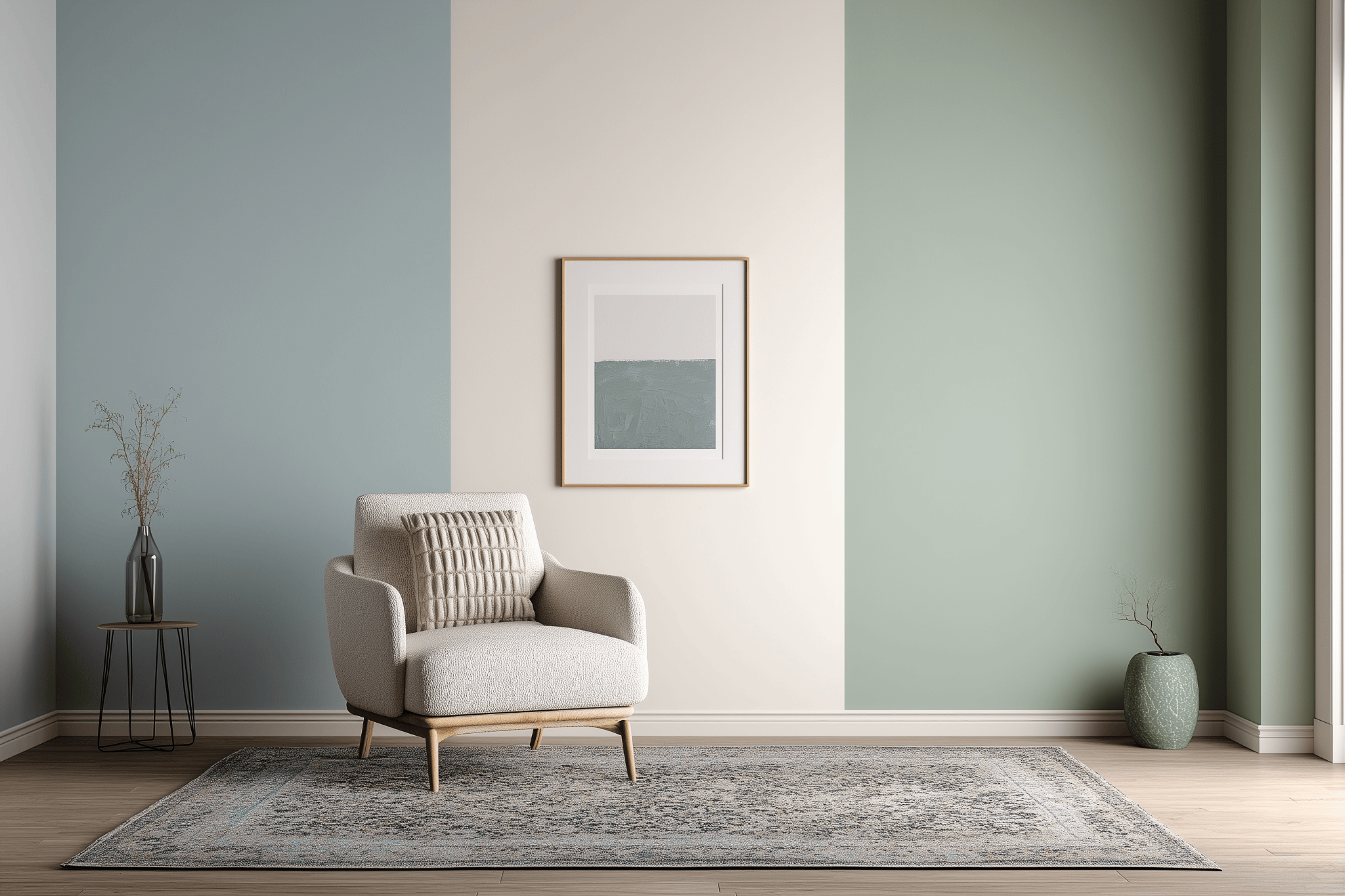 Why stick to two colours when three can do the trick? Triadic schemes, or using three hues evenly spaced on the colour wheel, are trending big in 2025. For example, soft sage, blush pink, and sand beige create a beautifully balanced, soothing combination. This approach to bedroom wall painting ensures your space feels cohesive, with just the right amount of visual contrast.