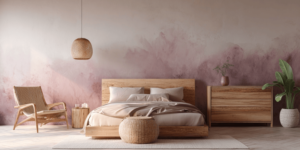 Smooth is out, and texture is in! From sponge effects and stucco finishes to lime wash and metallic accents, textured bedroom wall painting adds a tactile layer that elevates your space instantly. The subtle shadows created by texture make walls look more dynamic, especially under natural light.