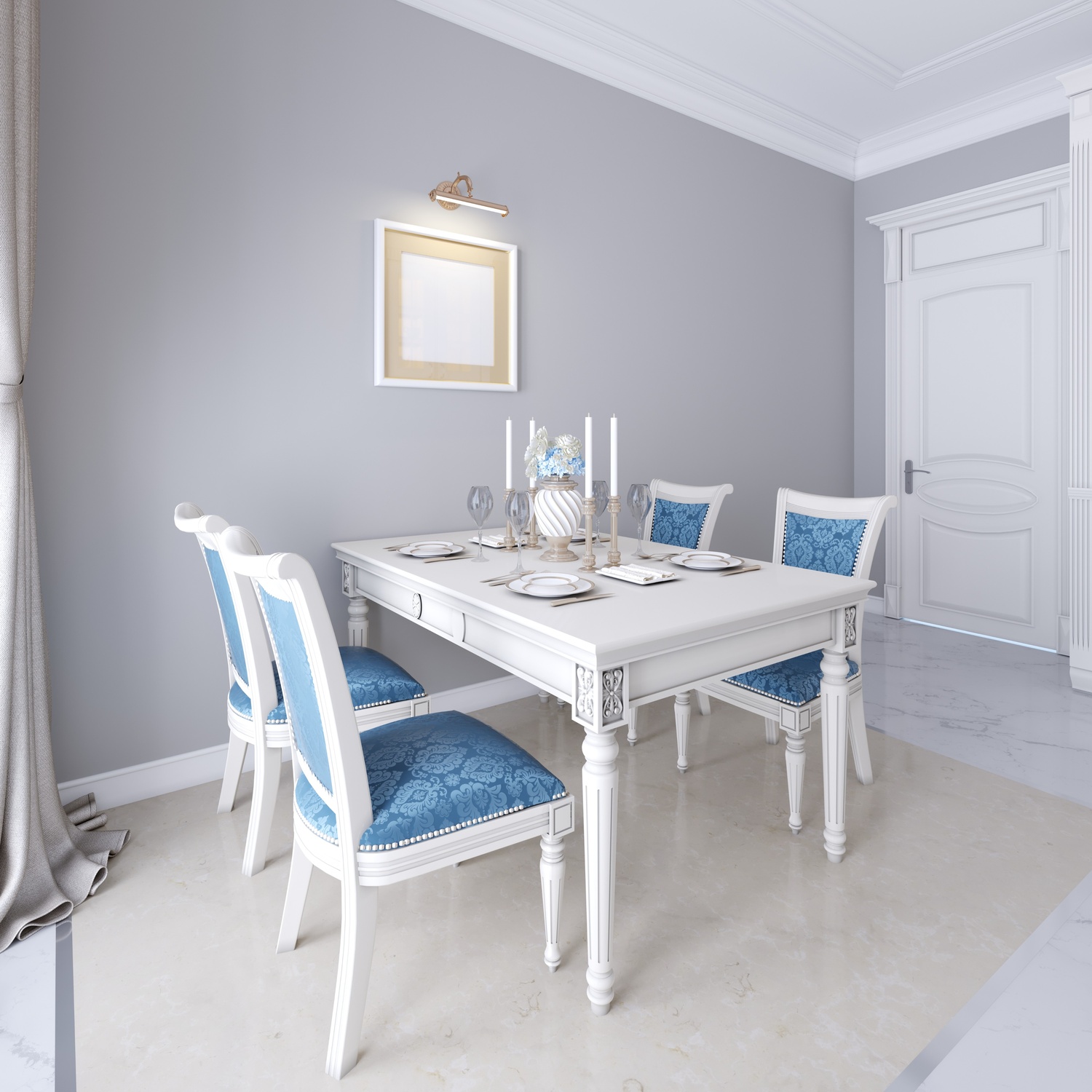 Elegant party ideas for holi with chic blue dining decor