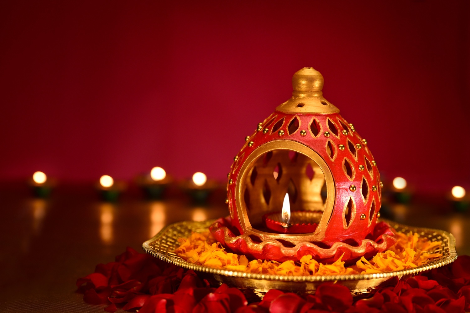 Traditional party ideas for holi with diya and floral decor