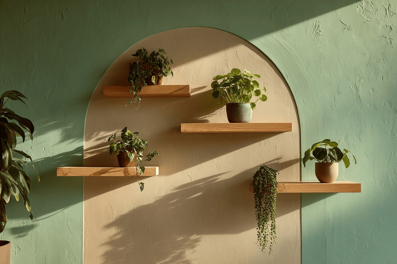A green wall is a stunning way to bring life and freshness to your dining area. Not ready for a full vertical garden yet? No problem. Add a cluster of indoor plants like money plant, areca palm, or snake plant.