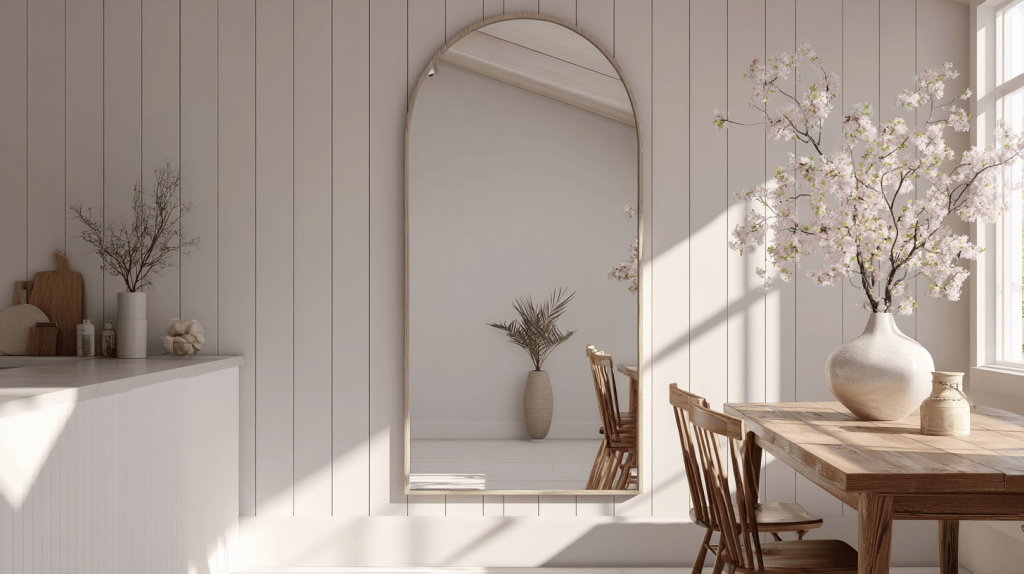 Round mirrors feel soft and welcoming. Square and rectangular shapes add a clean, contemporary feel. Try placing one directly opposite your dining table to make the space feel more open.