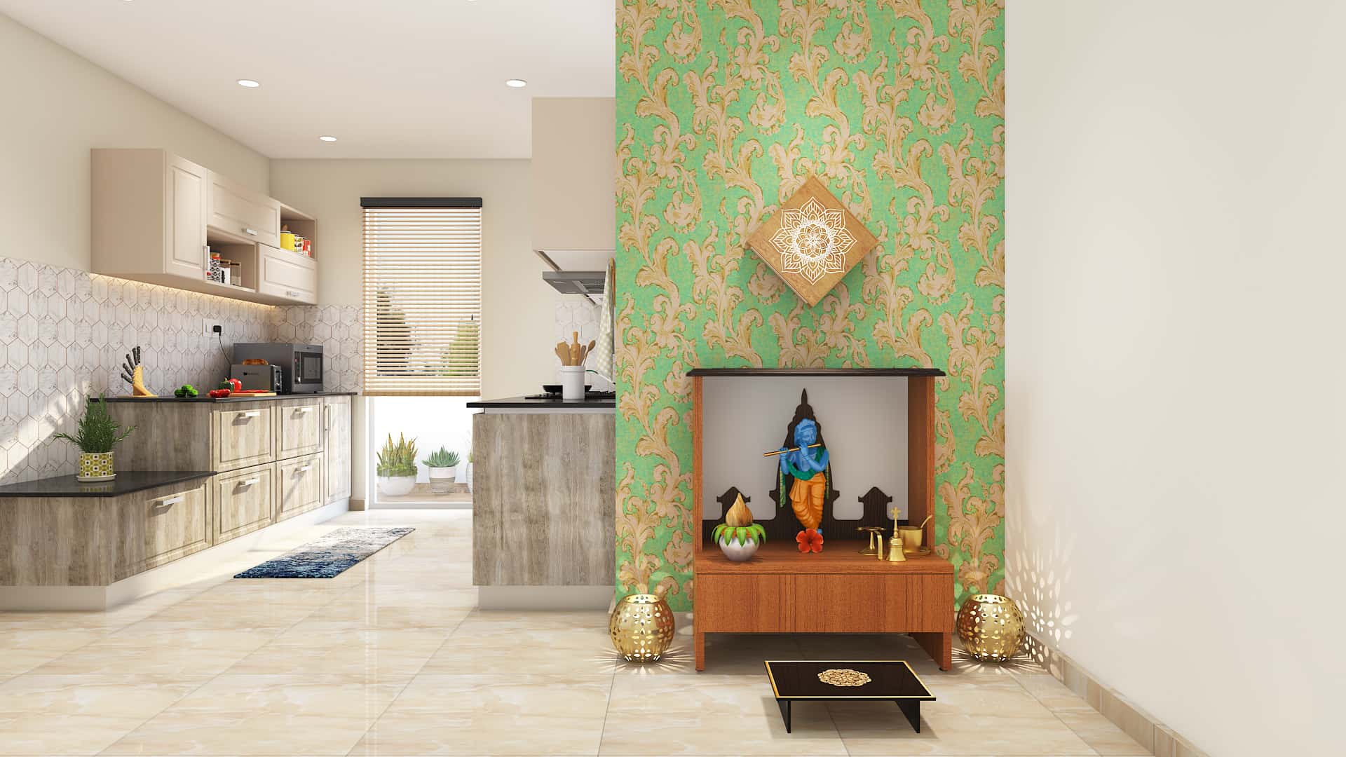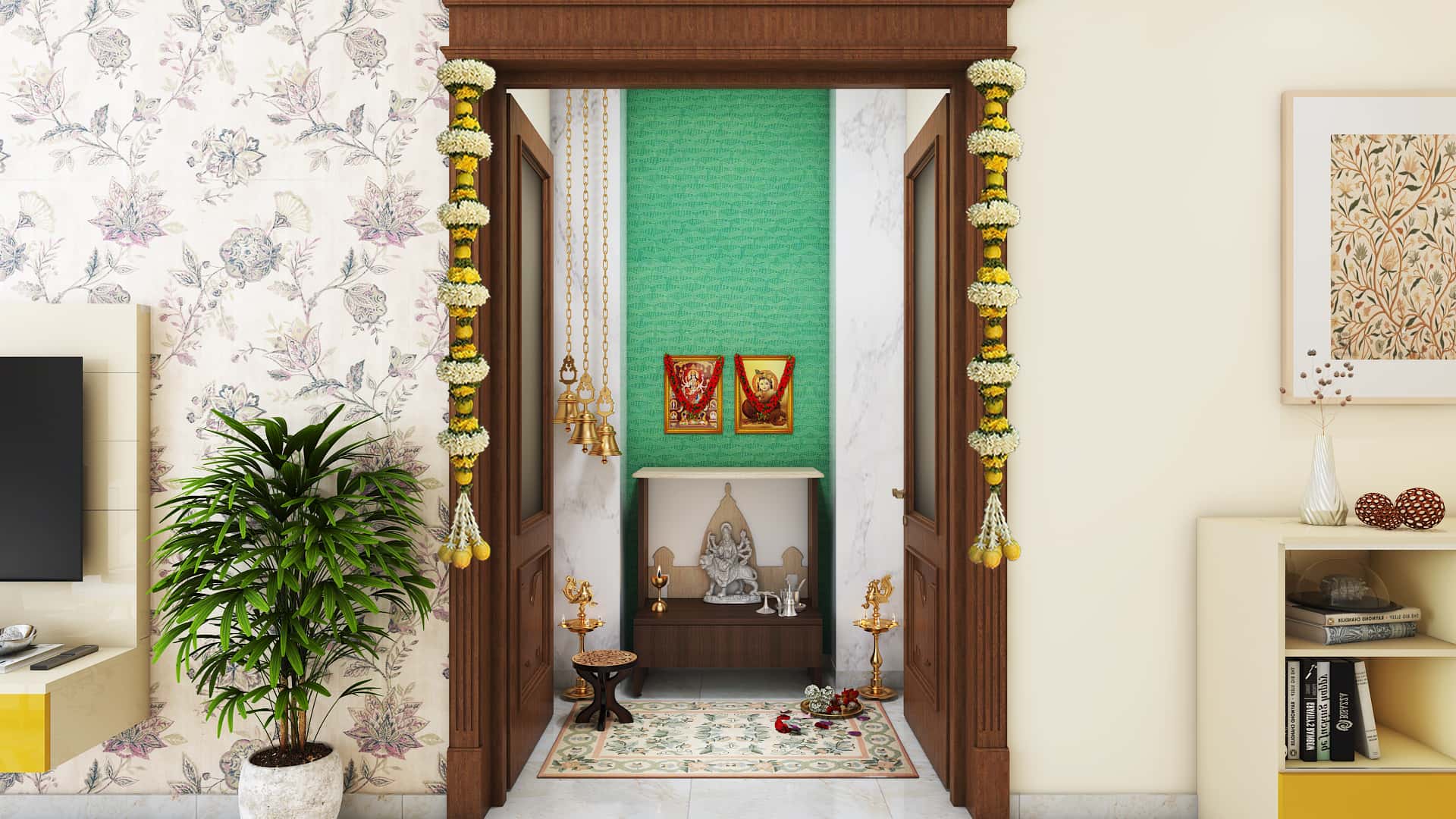 The colour green, on the other hand, can effortlessly infuse life into your pooja room: