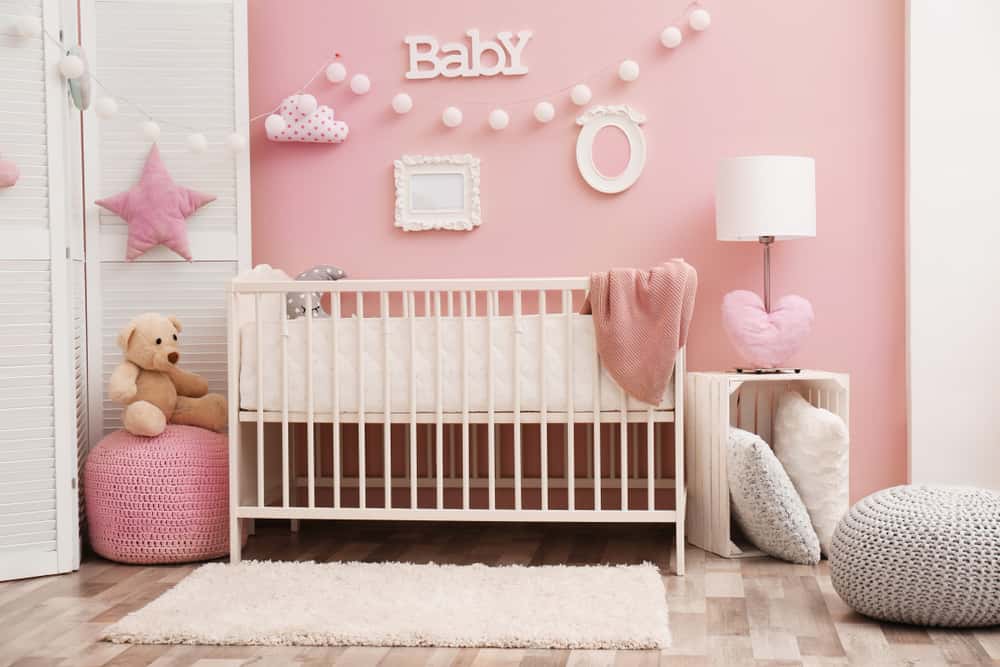 You can choose to paint all walls in a shade of pink or use a combination of pink and white, and apply the same scheme to accessories within the nursery.