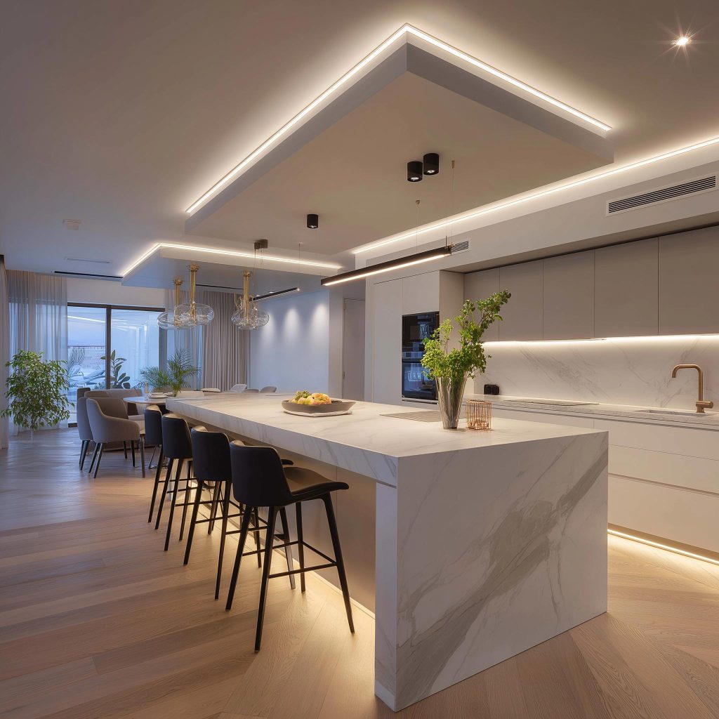 Trends focus on minimal designs, indirect lighting, and clean lines. The shift is towards simplicity and functional elegance. Neutral tones and subtle detailing are also becoming more popular.