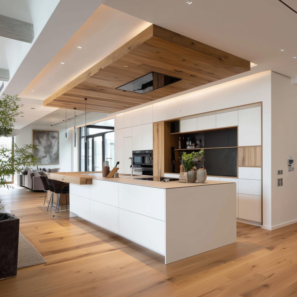 new gypsum ceiling design 2026 modern kitchen hall with wooden accents