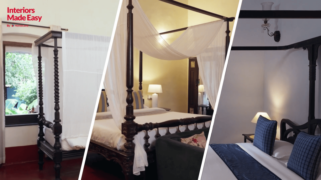Caption: The three bedrooms in the house have vintage four-poster beds and drapes that add an old-world charm to the areas of rest.