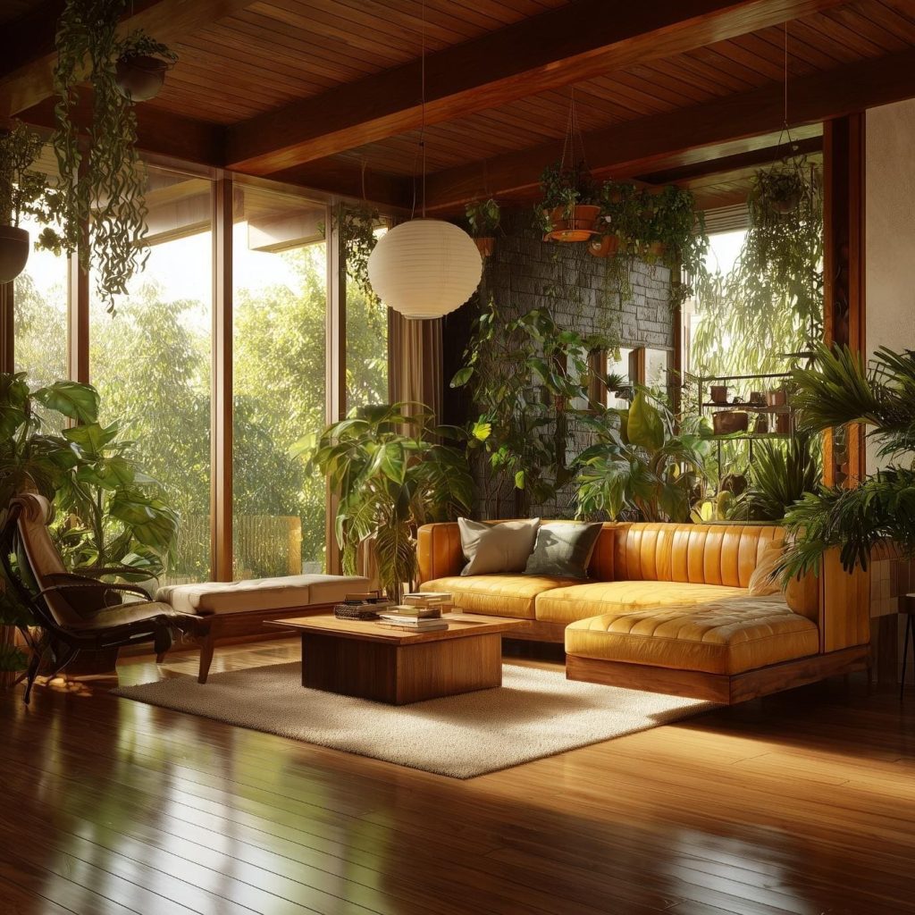 5. What are the benefits of using bamboo, cork, reclaimed wood and so on in your living room interior design?