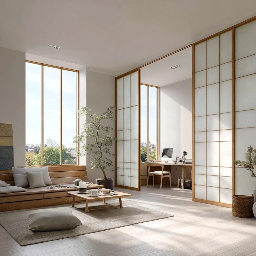 Flexible sliding partition for living room to create workspace