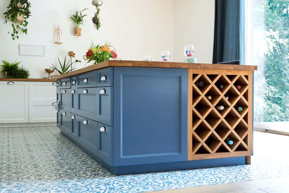 Tired of plain, boring tiles? Ramp up your kitchen floors and add pizazz with these vibrant Moroccan tiles in shades of brown and blue. Repeat the patterns in the backsplash, and make your kitchen the talk of the town!