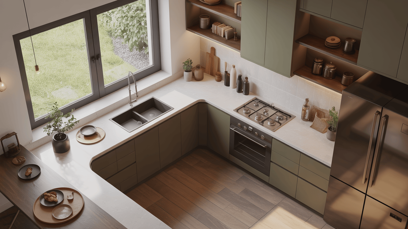 • An Open and Airy Ambience: Unlike U-shaped or galley kitchens that can feel enclosed, the L-shape opens up the room. This is ideal for creating a kitchen-living-dining area, a layout highly prized in contemporary Indian apartments.