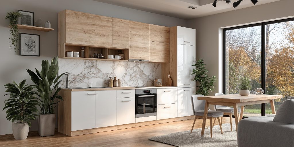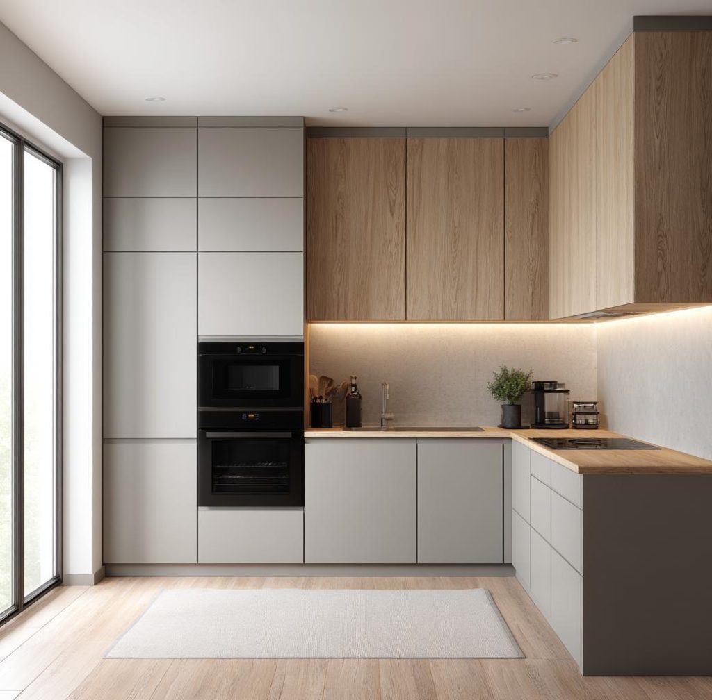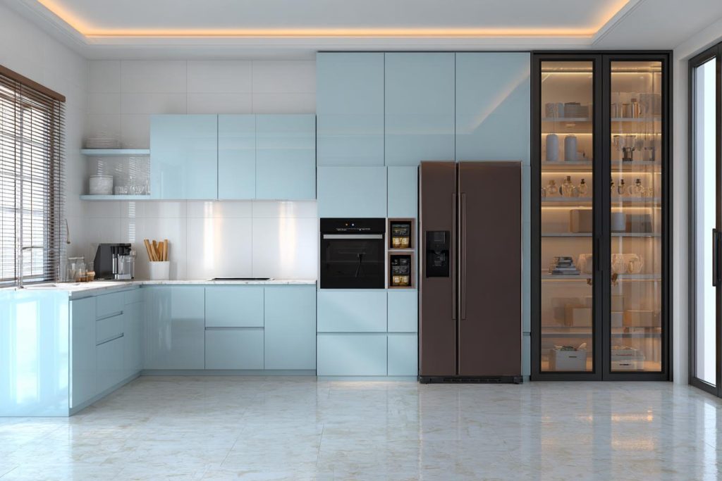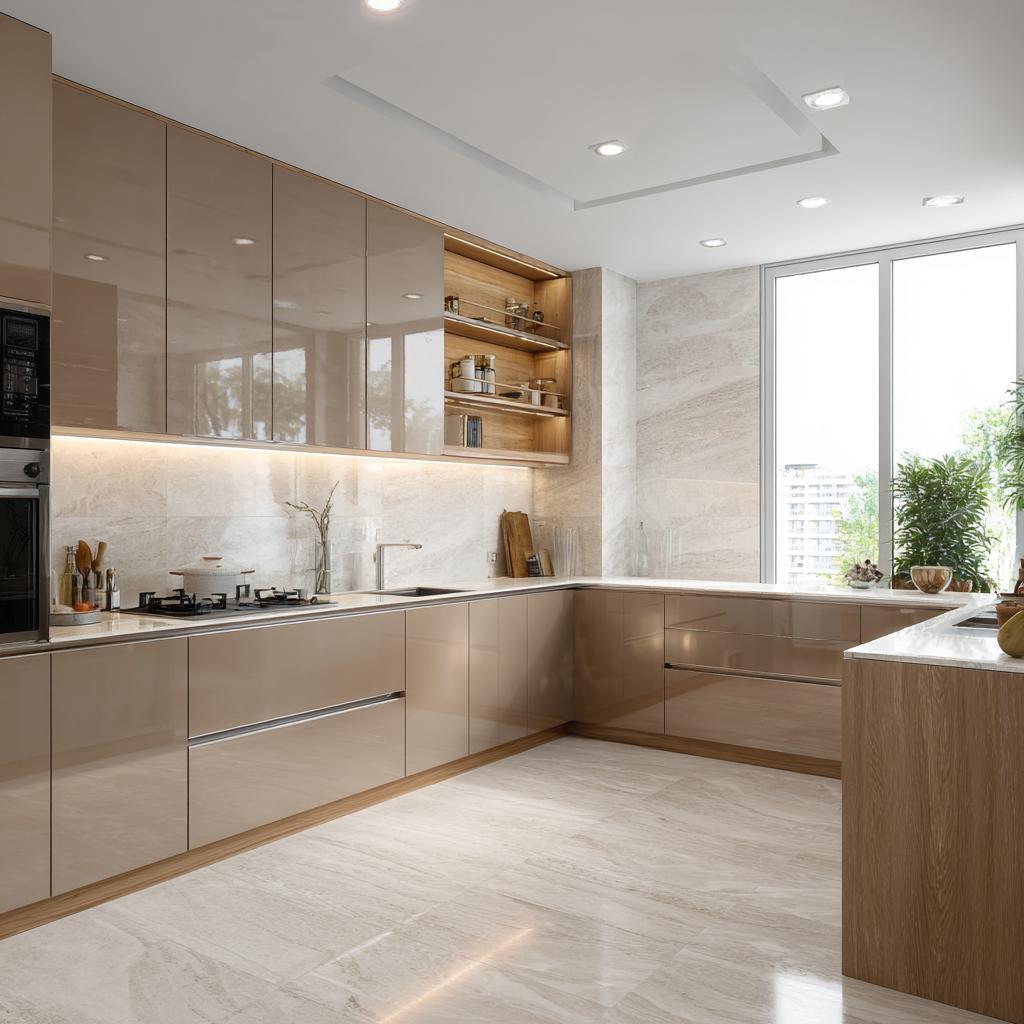 Matte finishes, wood textures, and dual-tone combinations work well for modular kitchens. They balance style with practicality, while also being easy to maintain. Simple, clean designs also tend to age better over time.