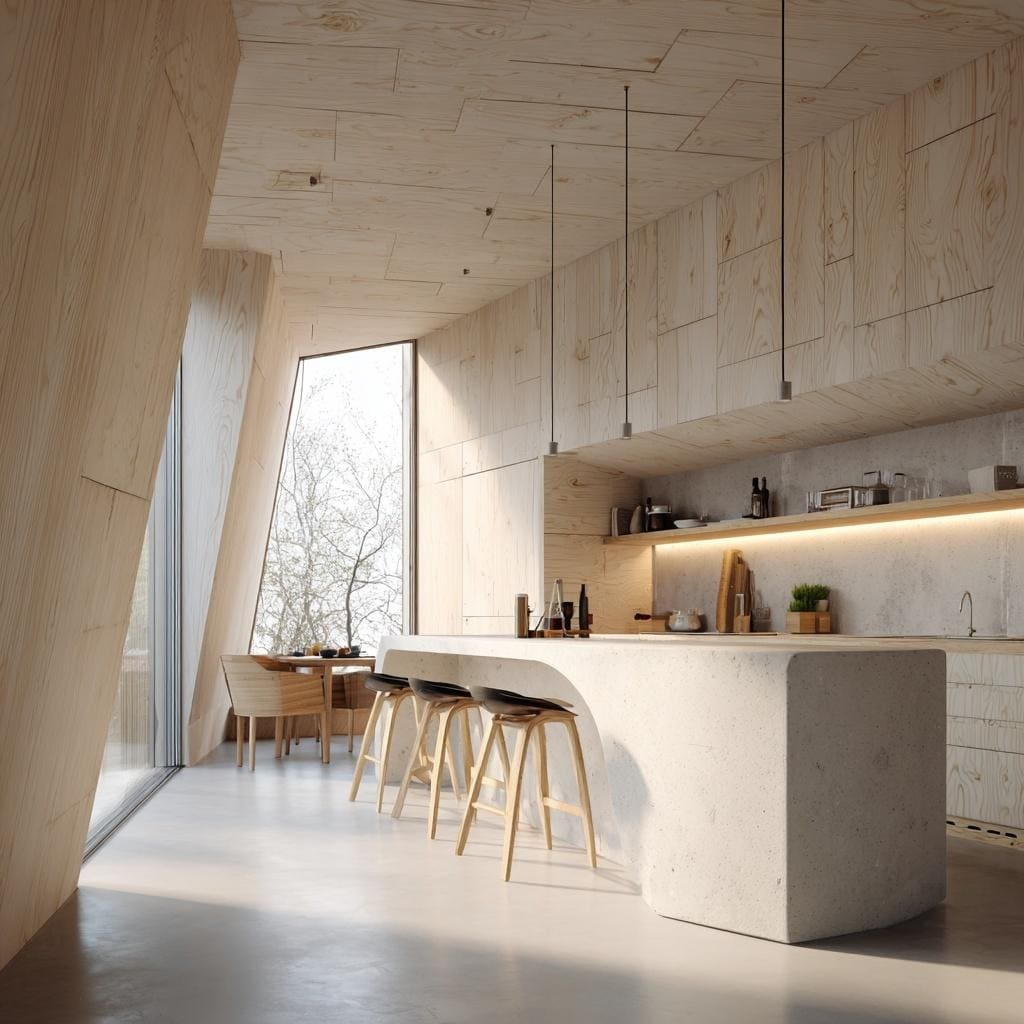 Modern plywood kitchen layouts offer a clean and organic aesthetic.