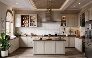 Indian small house kitchen furniture designs also benefit from dedicated zones. For example, a “Masala Drawer” located right next to the hob and a dedicated “Thali Rack” built into the wall-mounted unit can streamline the cooking process significantly. Using stainless steel or high-quality PVC laminates ensures the furniture survives the heat and humidity of Indian tempering and pressure cooking.