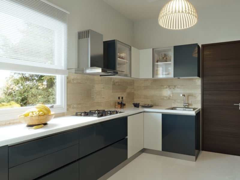 Neutral Tones L-Shaped Modular Kitchen