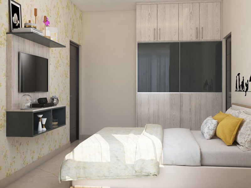 Sleek and streamlined, this floor-to-ceiling two-tone straight wardrobe comes in a luxurious lacquered glass finish. The horizontal black panel offers a striking contrast against the light wood, while the glossy effect enhances the contemporary vibe of this bedroom cupboard. This design is practical and utilitarian, making the most of clean lines and modern design elements for a stunning aesthetic.