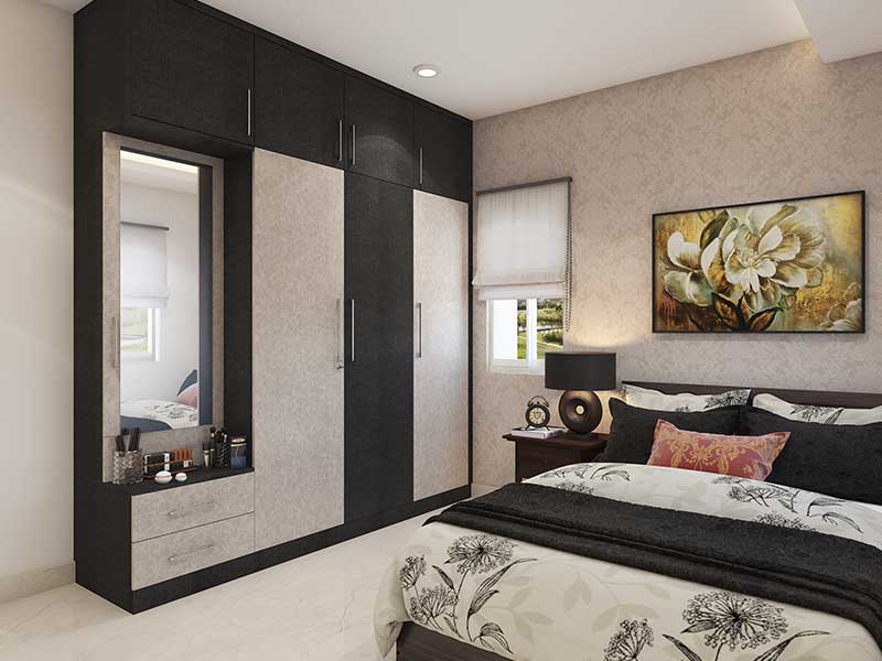 Dare to be different? Choose a colour palette that’s dramatic and eye-catching, and make your bedroom design the talk of the town! Black is indeed beautiful in this timeless wardrobe that contrasts glossy black against textured cream for a statement look. Carefully chosen bed covers, drapes and artwork accentuate the colour palette and pull the look together.