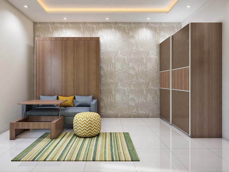 Wooden wardrobe designs are very popular and easily lend themselves to both contemporary and classical decor themes. The clean lines of this two door sliding door wardrobe design are perfect for a minimalistic Scandi-style home interior.The central panel in a lighter shade of wood offers subtle contrast. Concealed handles add to the streamlined aesthetic, while offering ease of use.