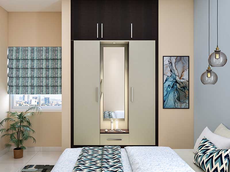 Cream and Brown Hinged Door Wardrobe in a Matte Finish
