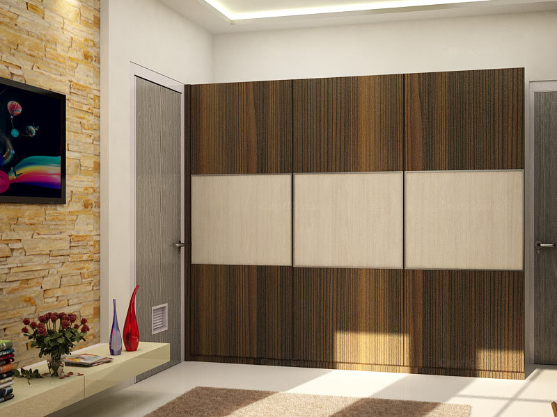 Sleek and sophisticated, this bedroom decor is all about style on a budget. Gorgeous grains of teak wood and ash wood add a touch of nature to this straight 3 door wardrobe design. This is a warm, cosy bedroom that you’ll love to call your own! Continue the colour narrative all around the room for a cohesive look.